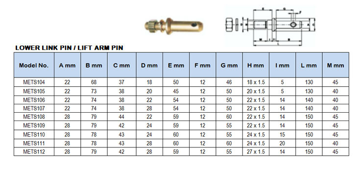 SHAFT LOCKING PIN / P.T.O PIN SQUARE